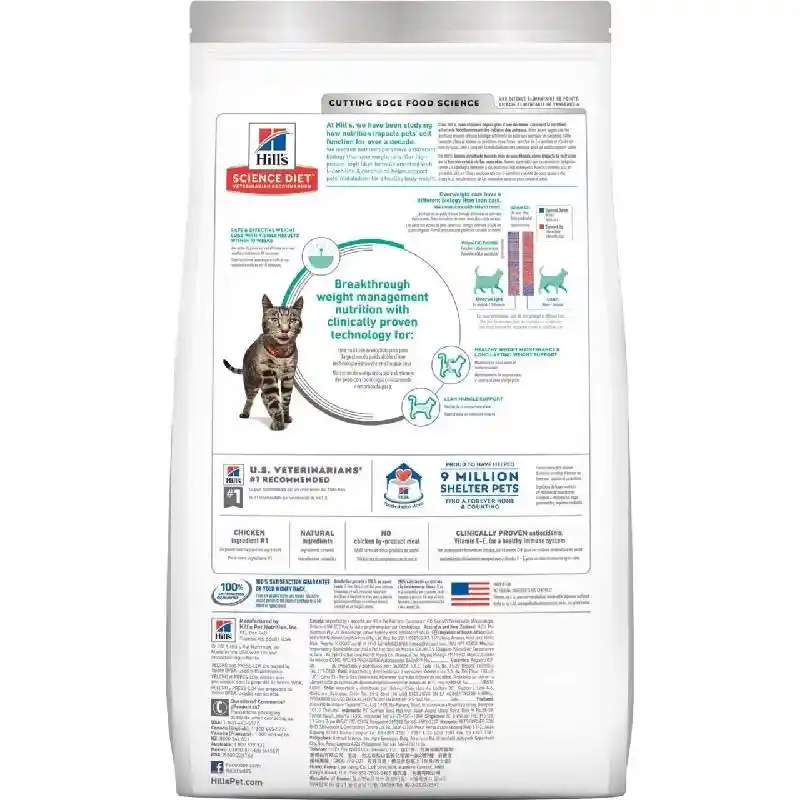 Hill's Science Diet Adult Perfect Weight Dry Cat Food provides your four-legged friend with great tasting nutrition for a long, happy life. Made with wholesome ingredients such as savory chicken, this nourishing recipe is balanced to meet your pet's needs, promote weight loss and maintain lean muscle. Manufactured in the United States, every ingredient meets strict requirements for purity and nutrient content which exceed industry standards. Formulated for adult cats that require fewer calories, this Hill's Science Diet provides your cat the nutrition she needs for a lifetime of health and happiness.