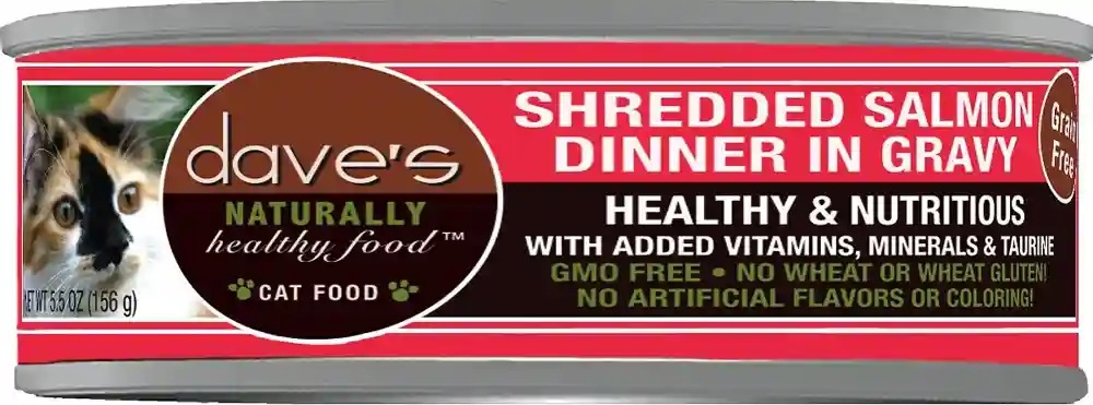 Dave's Naturally Healthy Grain Free Shredded Salmon Dinner In Gravy Canned Cat Food 5.5-oz
