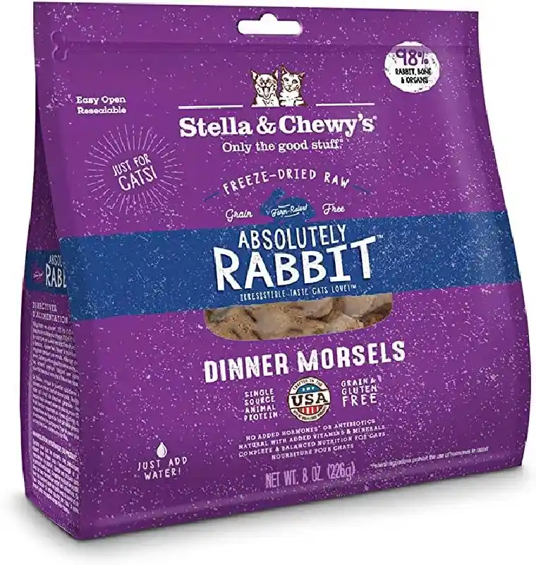 Dinner Morsels Absolutely Rabbit Grain Free Freeze Dried Raw Cat Food 8-oz