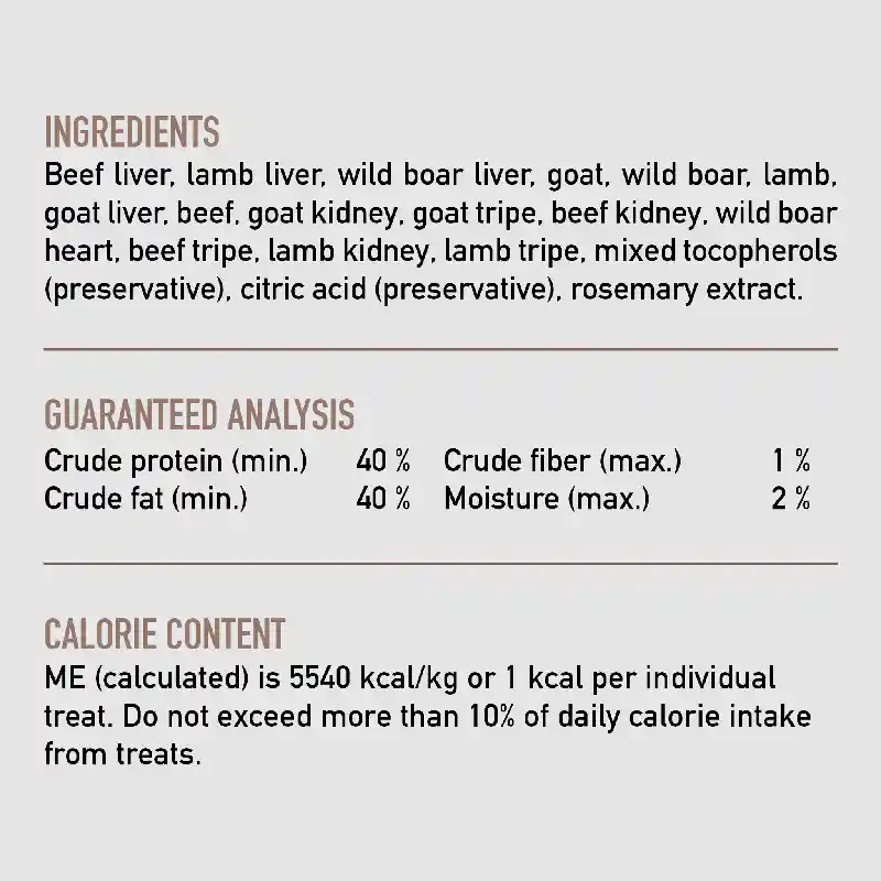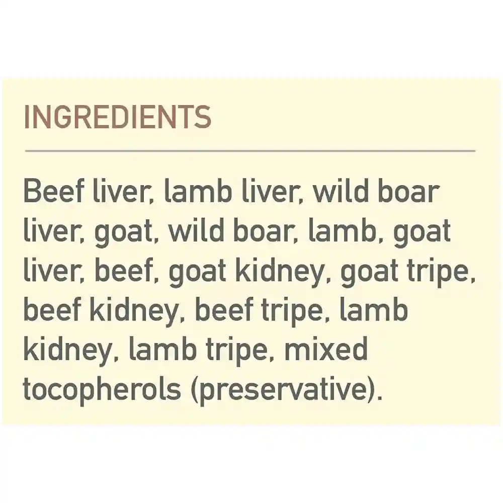 - All-natural ingredients including 100% beef, lamb, boar, and pork
