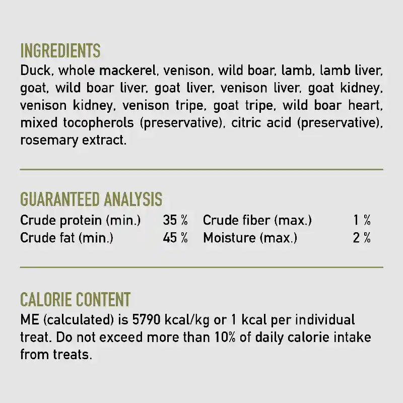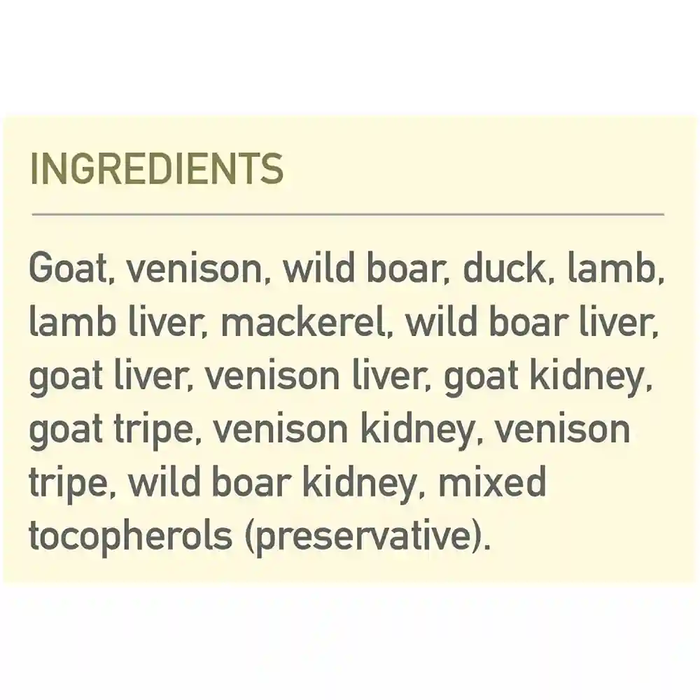 - All-natural ingredients including 100% boar, goat, venison, and Arctic char