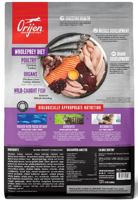 - Authentic WholePrey diet features the most succulent parts of the prey like poultry or fish, organs and bone to mimic what your cat’s ancestors consumed in the wild.