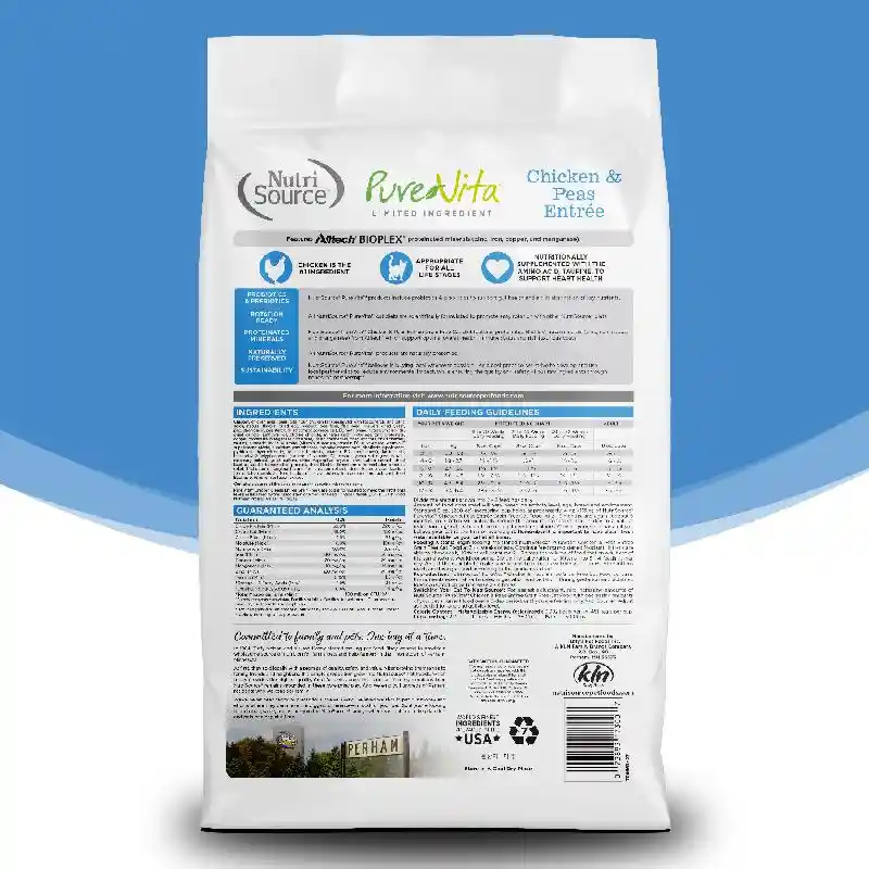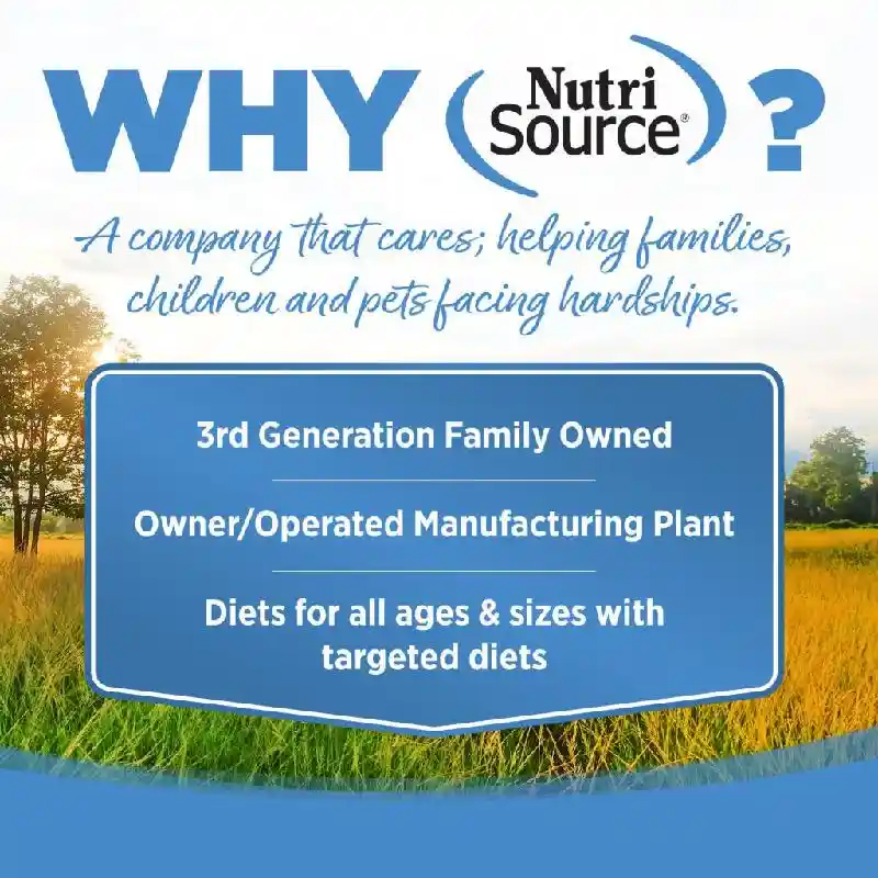NutriSource formulas deliver compact nutrition and include pre and pro-biotics to help support a healthy gut. Balanced Omega-3 and Omega-6 fatty acids plus Zinc to support a strong immune system, healthy skin and coat condition.