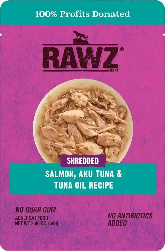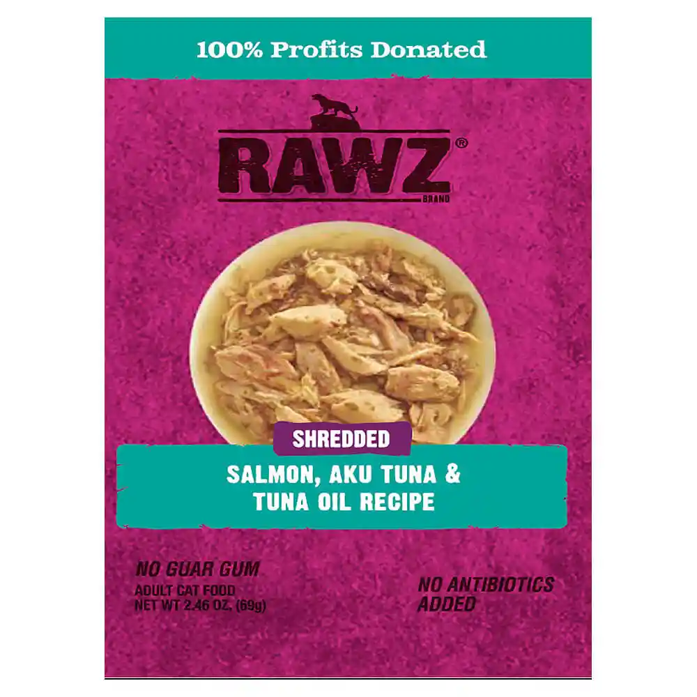 Rawz Shredded Salmon, Aku Tuna, & Tuna Oil Pouch Cat 6/8/2.46 Oz