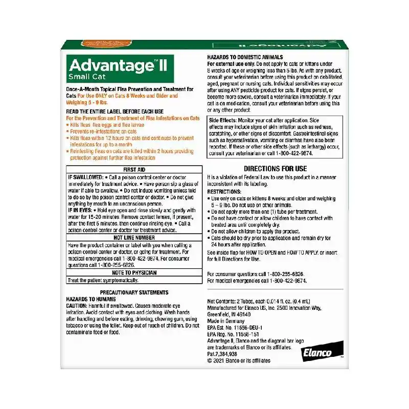 Advantage Ii Small Cat 5-9# Orange 2 Pk