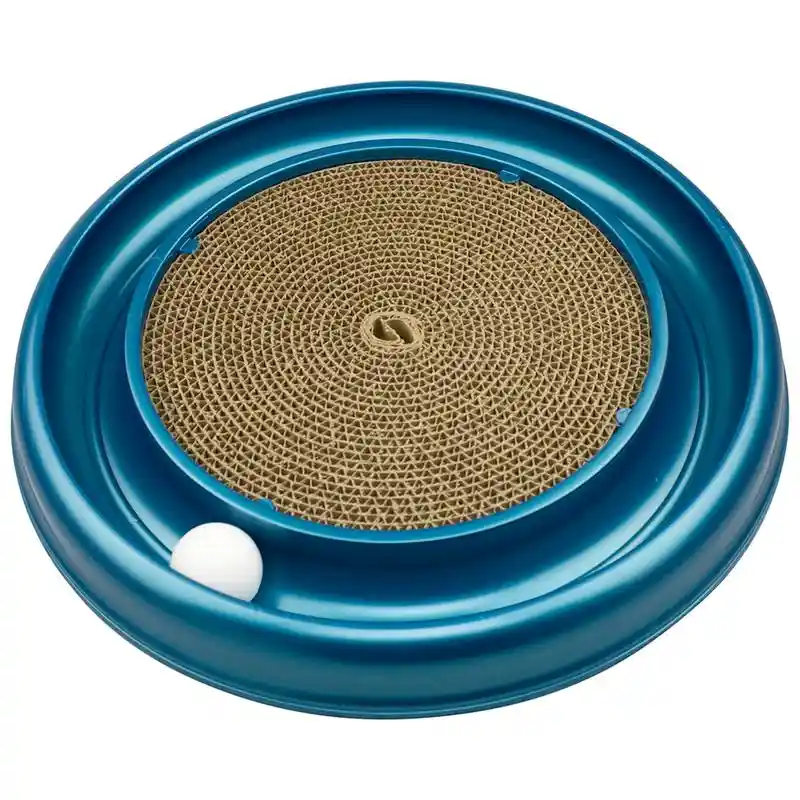 Get three Toy - in one with the Turbo Scratcher Cat Toy! This rounded race track toy is equipped with a large scratchpad and fun spinning ball to give your cat a variety of playtime options. The race track keeps cats active, while the scratchpad helps prevent cats from damaging furniture. Replacement pads are available to ensure long-lasting use. Sprinkle the catnip included with the toy onto the scratchpad for an added boost of energy during playtime!