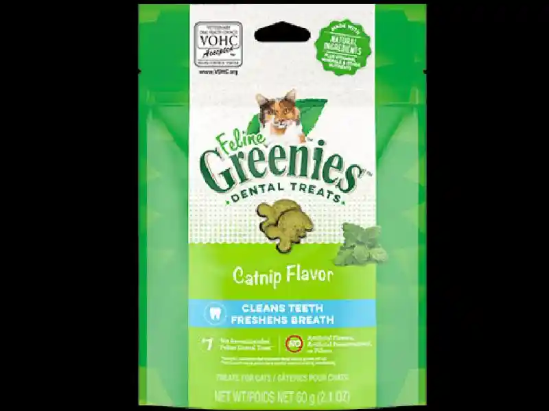 FELINE GREENIES Tempting Tuna Flavor Dental Cat Treats were designed to help keep your catโs teeth clean and healthy. The crunchy texture of these irresistible cat snacks helps clean teeth, reduce tartar buildup, and freshen cat breath, letting you enjoy cuddle time even more. Made with natural ingredients plus vitamins, minerals, and other nutrients, these tasty natural dental treats are nutritionally complete and balanced for adult cats. Plus, FELINE GREENIES Dental Treats contain less than 2 calories per treat and are the #1 vet recommended feline dental treat.* For some healthy play, try placing a few cat treats inside a treat dispenser toy and watch your cat chase and swat away. Give your cat FELINE GREENIES Dental Treats, and you're sure to hear happy purrs of joy. FELINE GREENIES Daily Dental Treats... for healthy and happy dental care.