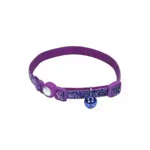 Jeweled Buckle Adjustable Breakaway Cat Collar With Glitter Overlay - Purple 3/8" X 8" 12"