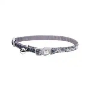 Jeweled Buckle Adjustable Breakaway Cat Collar With Glitter Overlay - Silver 3/8" X 8" 12"