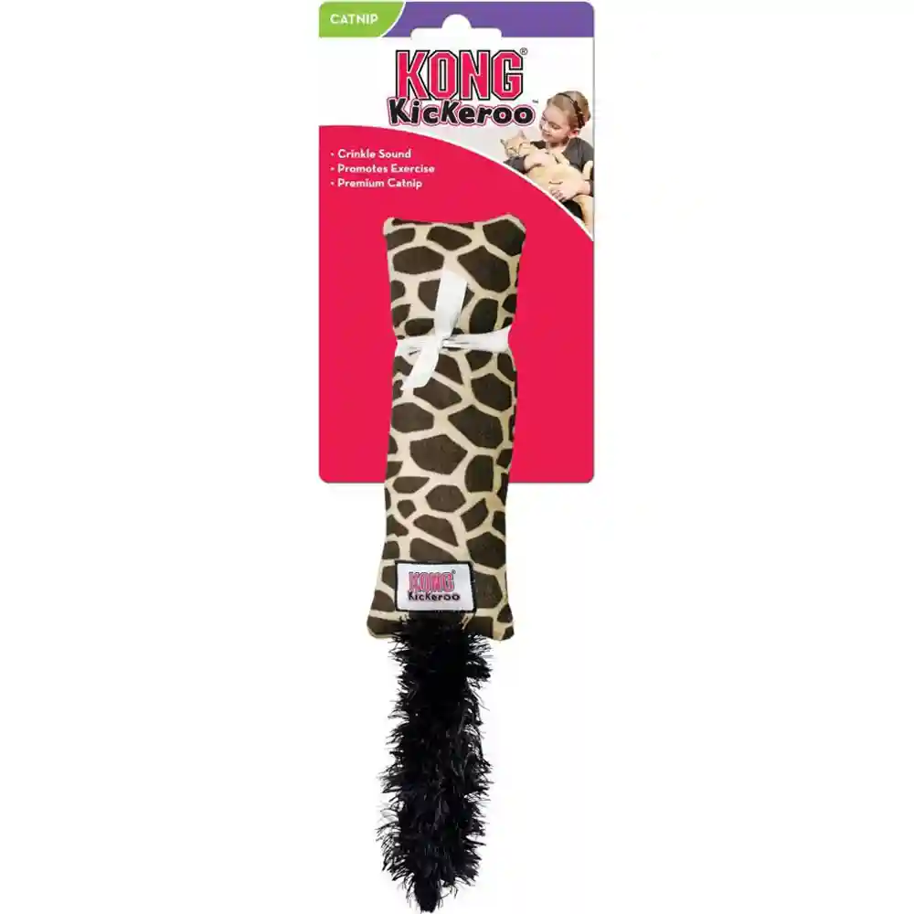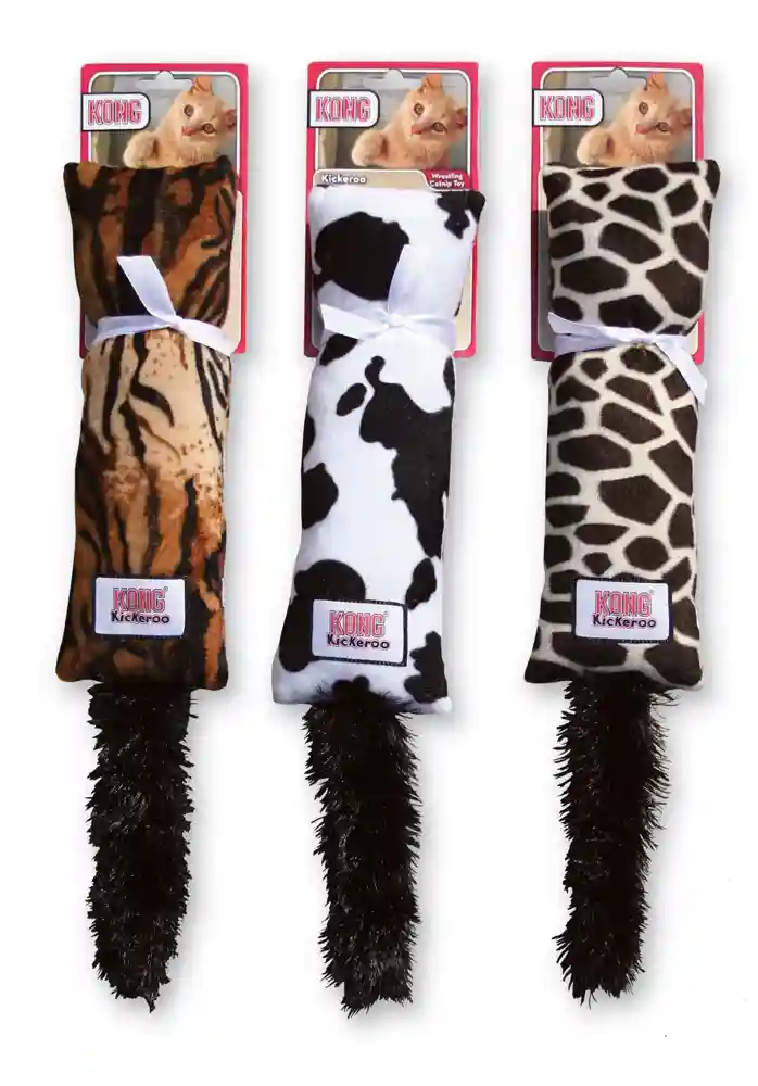 KONG Kickeroos long length encourages your cat to kick with hind paws, promoting tons of healthy, full-body activity. Fluffy tail sparks hunting instincts and Kickeroos soft material is lovely for snuggling. The crinkling sound keeps kitties interested while the KONG Premium North American Catnip boosts the fun. Long shape promotes full-body wrestling and hind paw kicking. Crinkle sound adds excitement that keeps kitties playing. KONG Premium North American Catnip inside boosts fun. Fluttery tail adds motion, sparking chasing instincts. Soft and cuddly for snuggling. Inspect products frequently. Supervised use only. Discontinue use if worn, loose or torn pieces occur.