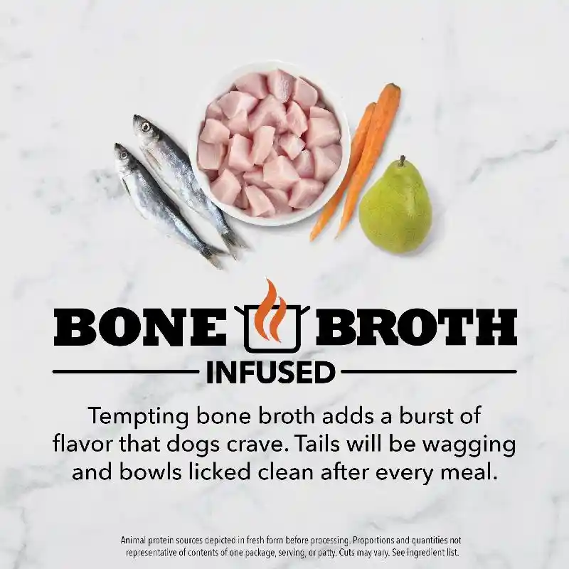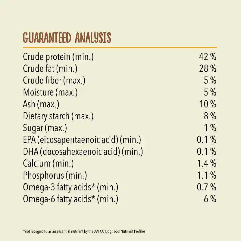 ACANA® Freeze-Dried Food gives your dog all the benefits of raw nutrition, with none of the mess! Available in bite sized morsels or breakable patties, our Free-Run* Chicken Recipe satisfies your dog’s natural cravings in a convenient, freeze-dried form. It’s made from 90% quality animal ingredients** including free-run1 chicken, organs bone and broth, and balanced with wholesome vegetables and fruit. It’s also infused with hearty and delicious bone broth for a taste dogs love. Satisfy your dog’s cravings with the nutritious animal ingredients in ACANA Freeze-Dried Food! 1Our free-run chickens and turkeys are not housed in cages and are able to move in a barn without outdoor access. 2Approximate and derived from the unprocessed state of the ingredients