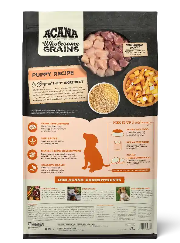Acana 22.5 Lb Puppy Dog Dry Wholesome Grains Ea