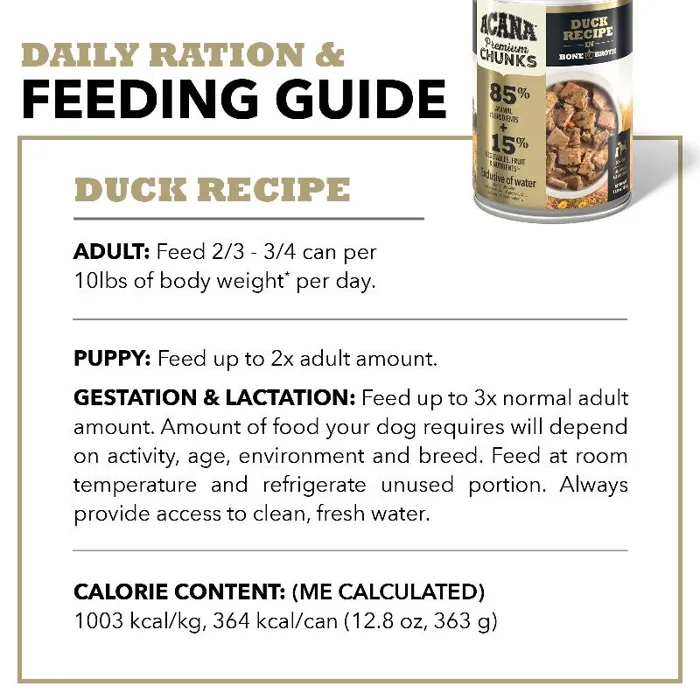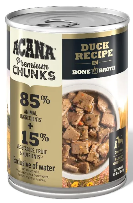 Acana Premium Chunks Duck Recipe In Bone Broth Wet Dog Food 12.8-oz 12-case