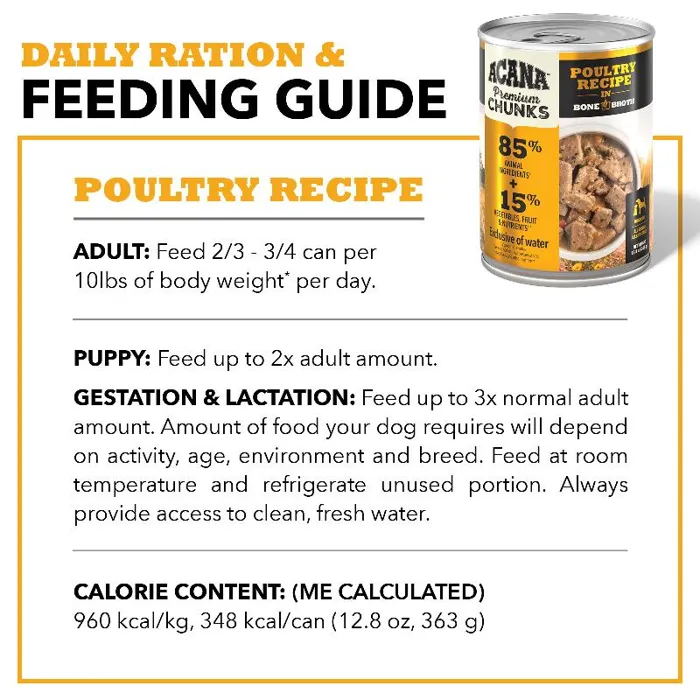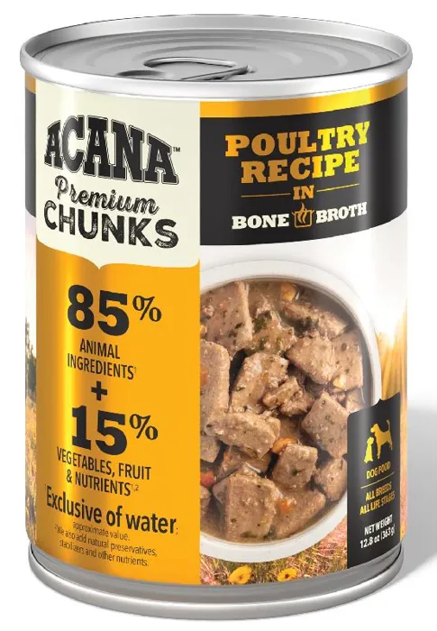 Acana Premium Chunks Poultry Recipe Bone Broth Wet Dog Food 12.8-oz