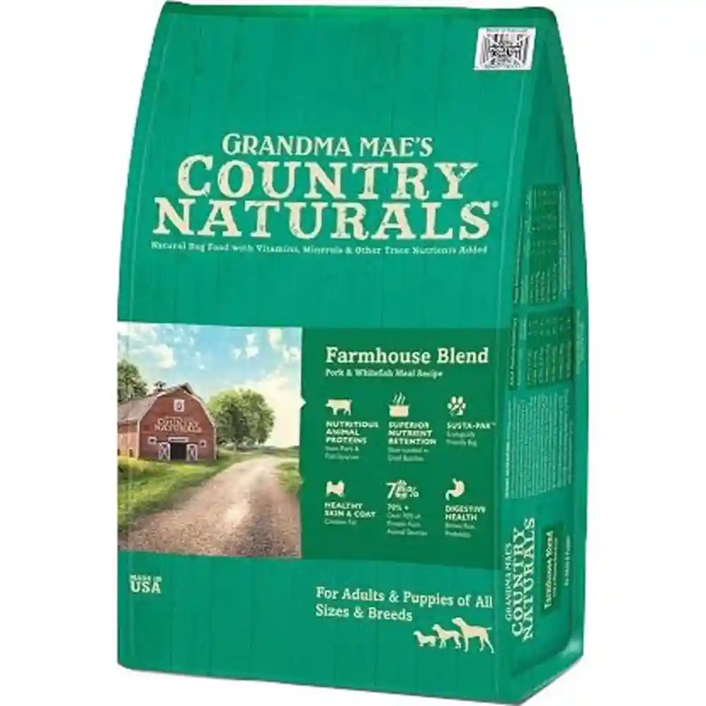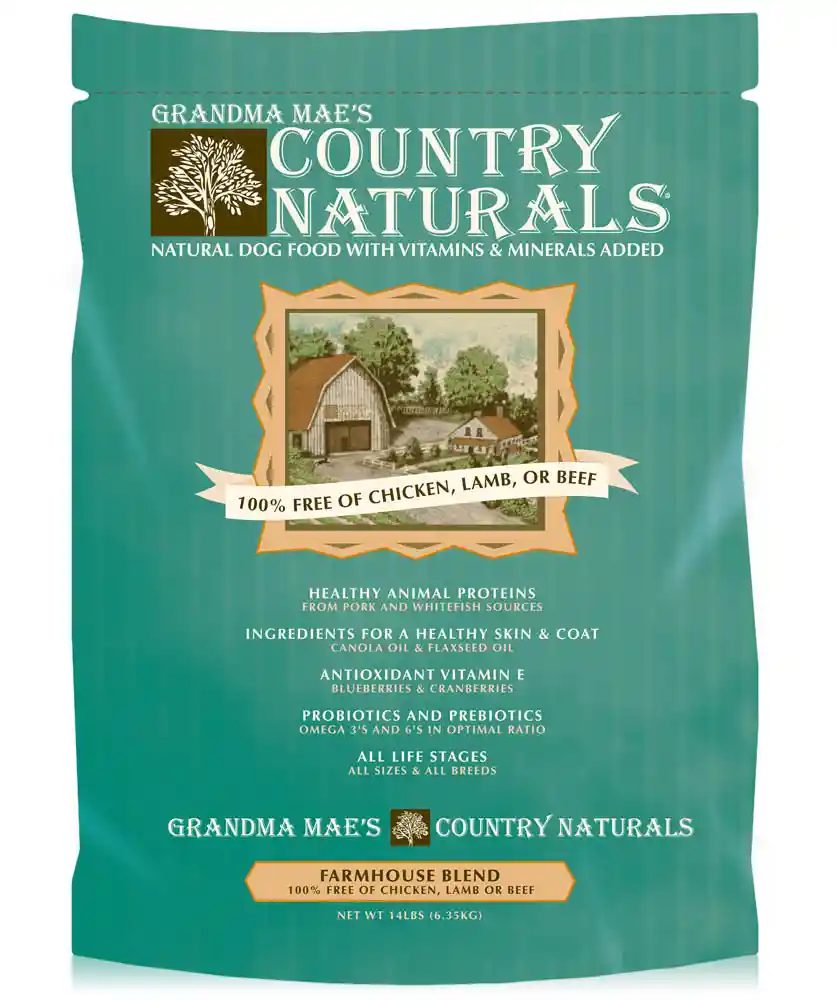 Our Farmhouse Blend Pork & Fish Entrée is made with high-quality, protein rich pork meal—the first ingredient—and whitefish meal for protein rotation and allergy avoidance. With wholesome brown rice and oats as well as fresh fruit and vegetables, it is nutritious and great for the digestive system, and is very palatable to dogs. The protein in Farmhouse Blend Pork & Fish Entrée is over 70% from animal sources and we use a slow-cook low-temperature process which helps retain the maximum nutritional value from all our ingredients. Good for All Life Stages and Breeds.