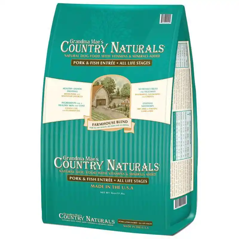 Our Farmhouse Blend Pork & Fish Entrée is made with high-quality, protein rich pork meal—the first ingredient—and whitefish meal for protein rotation and allergy avoidance. With wholesome brown rice and oats as well as fresh fruit and vegetables, it is nutritious and great for the digestive system, and is very palatable to dogs. The protein in Farmhouse Blend Pork & Fish Entrée is over 70% from animal sources and we use a slow-cook low-temperature process which helps retain the maximum nutritional value from all our ingredients. Good for All Life Stages and Breeds.