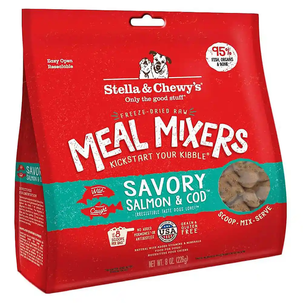 -Made in the USA - Savory Salmon & Cod Meal Mixers' all-natural recipe is crafted with care in small batches in Stella & Chewy's own USA kitchen to provide the highest levels of protein-rich meat and quality grain-free nutrition for your pet