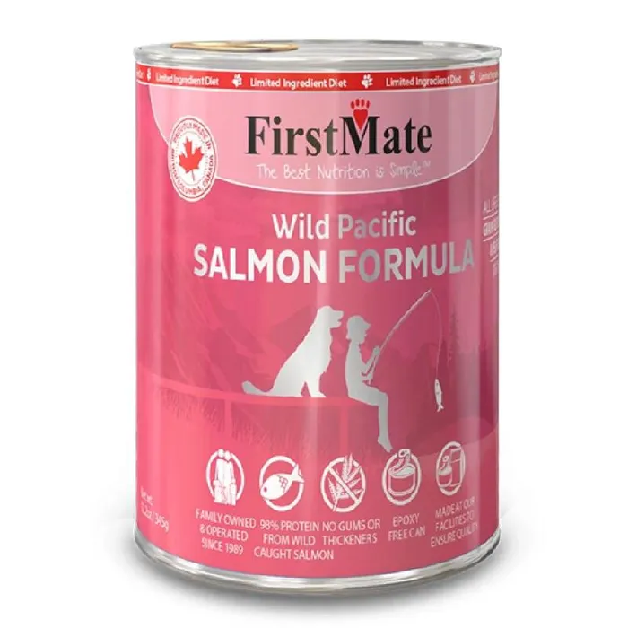 FirstMate's Salmon formula uses wild caught, food grade salmon sourced from sustainable fisheries. This Grain Free, limited ingredient formula is ideal for everyday feeding or for those with food sensitivities. It is carrageenan & guar gum free, epoxy free and grain & gluten free.