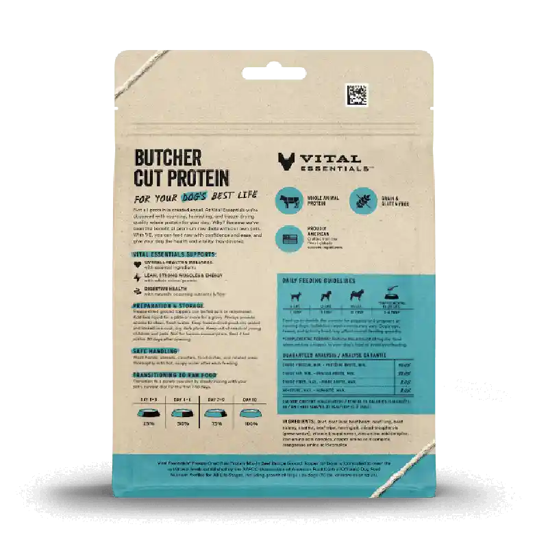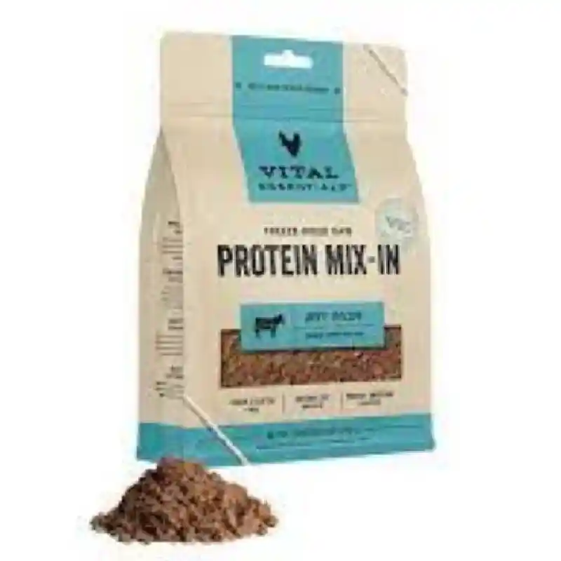 Enhance your dog's mealtime experience with VITAL Essentials Freeze Dried Dog Food Toppers. This raw beef ground topper is made with high-quality ingredients and is freeze-dried to preserve its nutritional value. Simply sprinkle this topper over your dog's regular food to add a boost of flavor and nutrients. The 6 oz size is perfect for dogs of all sizes, and the convenient packaging makes it easy to use and store. Give your furry friend a delicious and nutritious meal with VITAL Essentials Freeze Dried Dog Food Toppers.