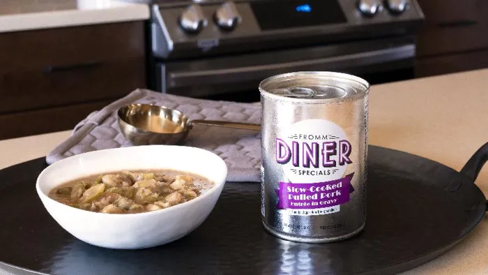 Fromm Diner Canned Dog Food is made with high quality ingredients and can be used as a sole diet or to enhance your dog's kibble. Made in Fromm's family owned facilities in Wisconsin USA, these canned formulas do not contain artificial colors or preservatives, provide moisture to help keep your dog hydrated, and are complete balanced nutrition for all life stages.