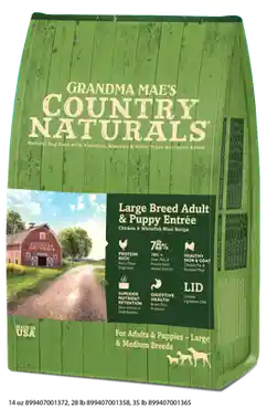 Our Large Breed Entree is made with high-quality, protein rich chicken meal as the first ingredient, with wholesome brown rice and oats and fresh fruit and vegetables. Additionally, we supplement Glucosamine and Chondroitin to reduce the likelihood of joint issues in your dog and increase joint comfort and support, which is especially important for large breeds. As in all our dry foods, the protein in Puppy Entree is over 70% from animal sources and we use a slow-cook low-temperature process which helps retain the maximum nutritional value from all our ingredients.