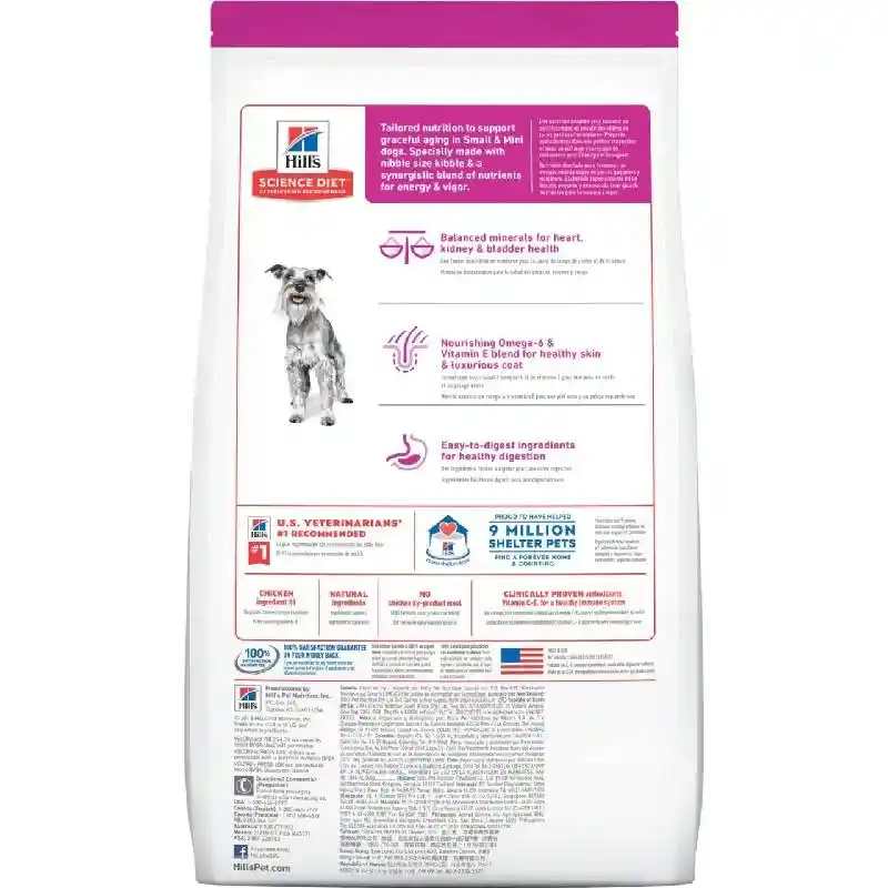 Hill's Science Diet Adult 7+ Small & Toy Breed Dry Dog Food provides your pup with precise nutrition for a healthy lifestyle. Made with wholesome ingredients such as savory chicken meal, rice and barley, this nourishing recipe is balanced to meet your pet's needs, improve energy and vitality, and promote a healthy skin and coat. Manufactured in the United States, every ingredient meets strict requirements for purity and nutrient content which exceed industry standards. Formulated for adult dogs 7 years and older that weigh up to 25 lbs, this Hill's Science Diet provides your pooch with the nutrition he needs for a lifetime of health and happiness.