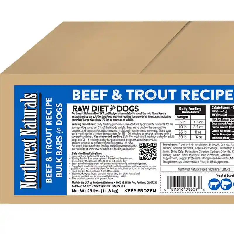 Northwest 25 Lb Dog Box Beef Trout Raw Frozen Dinner Bars Ea