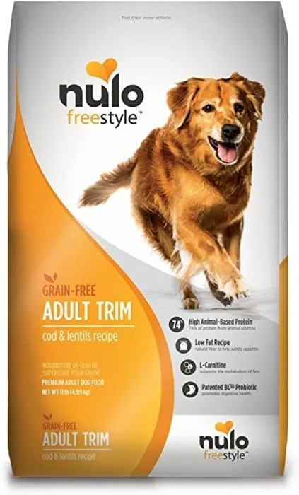 Staying fit and trim can be more challenging for some dogs. That's why we've made our Nulo FreeStyle Adult Trim formula. Our grain-free recipe of cod & lentils provides the protein and amino acids dogs need, but includes more fiber and less fat calories than our other recipes. And the addition of L-Carnitine supports the metabolism of fats. Great for all breeds and sizes that could use a little help becoming the dog they want to be.