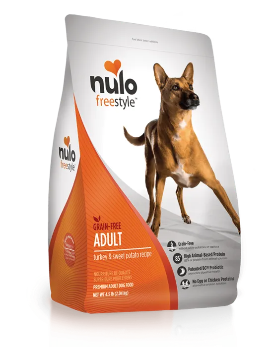 Chasing squirrels and splashing in the creek can make a dog hungry for a great meal. Our turkey & sweet potato grain-free recipe includes 85% animal-based proteins which means more amino acids to fuel lean muscles. And with our low glycemic index ingredients and advanced probiotics, you'll know your best friend is getting the nutrition they deserve. Compare any Nulo FreeStyle recipe against the brand you're currently feeding your athlete.