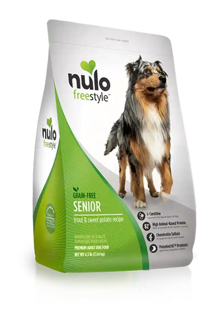 Treat your senior dog to a superior nutrition plan that keeps them fit and healthy for years to come. With all the benefits of a high animal meat, grain-free formula, our senior formula also includes Glucosamine and Chondroitin to support hip & joint health. And the addition of L-Carnitine helps the metabolism of fats for dogs that arent quite as active as they used to be. Who says old pups slow down? With Nulo FreeStyle they can get better with age.