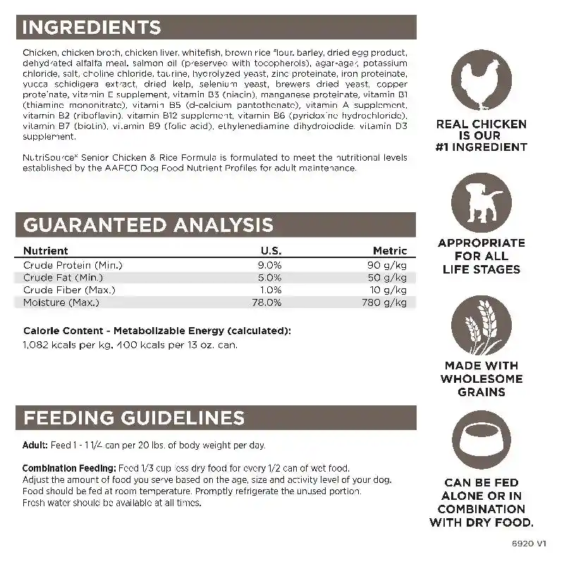 Nutrisource Dog Chicken Rice Senior Can 12.3oz 12/cs