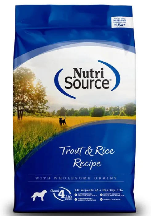 As a member of our grain inclusive series of dog foods, NutriSource® Trout & Rice Recipe is formulated to meet AAFCO guidelines for all life stages including growth of large size dogs (70 lbs. or more as an adult).