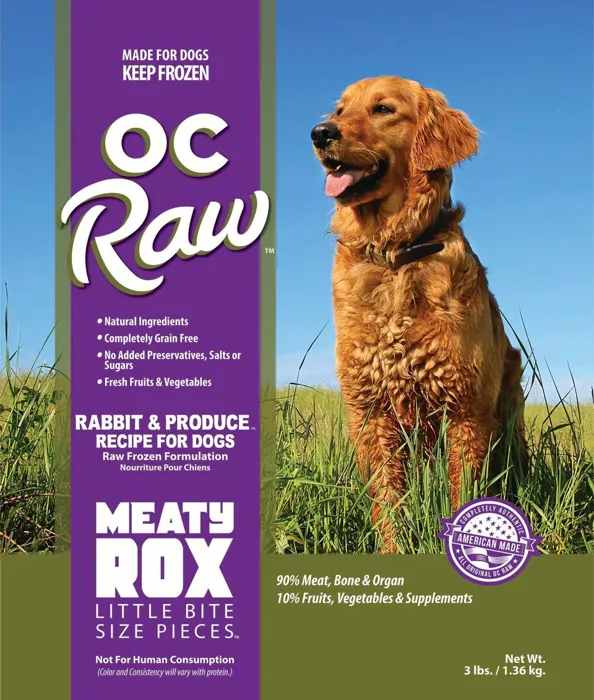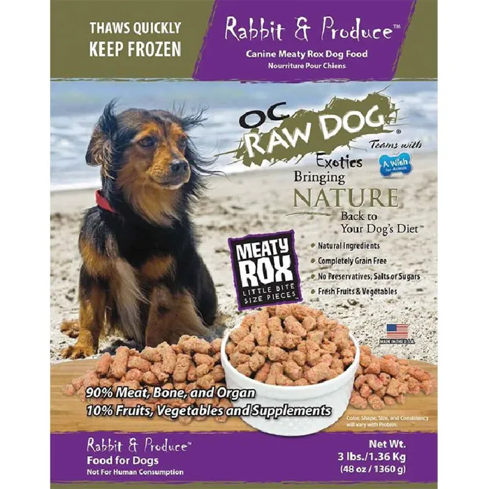 Sourced from local organic farmer. OC Raw's rabbit formula was designed with diabetic dogs in mind which also makes this formula so effective for dogs that need to lose a few pounds. The green beans help regulate blood sugar. Added cranberries increase the antioxidants to aid cancer fighting cells. Purpose: formula for effective weight loss and alleviating allergy symptoms.
