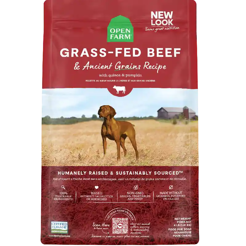 Open Farm Grass-Fed Beef & Ancient Grains Dry Dog Food is a high-quality and nutritious option for your furry friend. Made with 100% grass-fed beef, this recipe provides a protein-rich meal that dogs love. The addition of wholesome ancient grains adds fiber and essential nutrients to support your dog's overall health. This dry dog food is made with a 100% grass-fed Wagyu recipe, ensuring that your dog gets the best quality ingredients. It is also free from artificial flavors or preservatives, making it a natural and healthy choice for your pet. With a weight of 11 lbs, this bag of dog food will last for a while, providing your dog with delicious and nutritious meals.