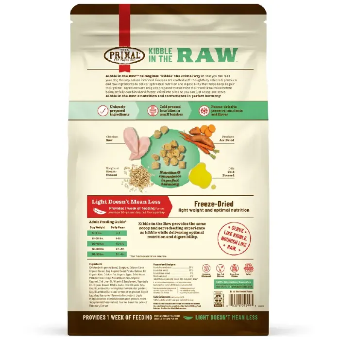 Light doesn’t mean less. Kibble in the Raw is more nutrient dense than traditional kibble, so you get more out of every pound.