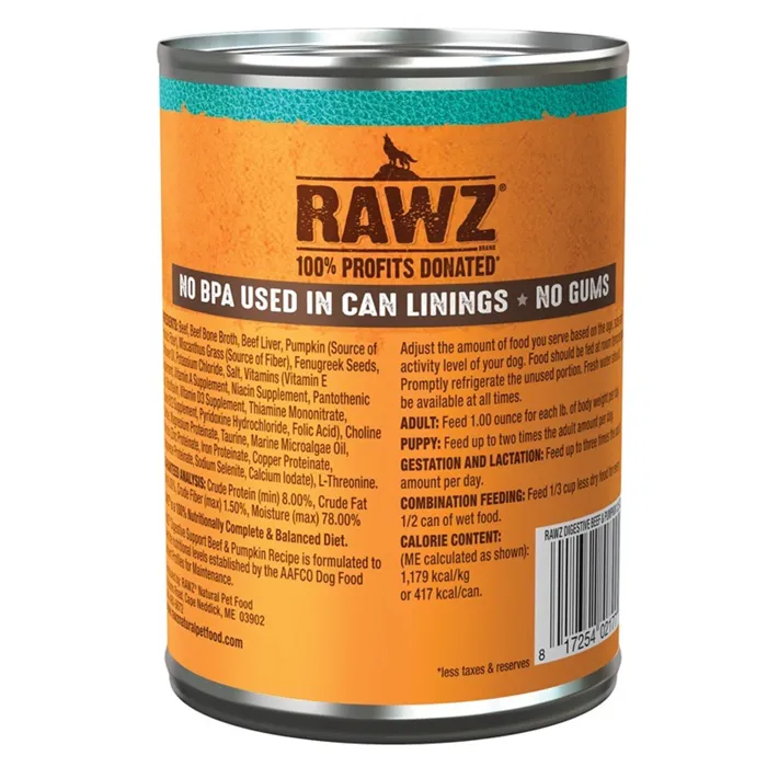 Rawz Dog Digestive Beef Pumpkin Can 12.5-oz