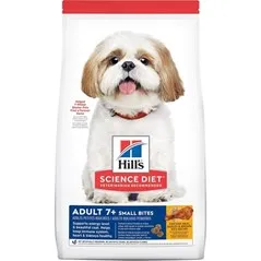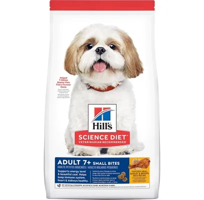 Hill's Science Diet Adult 7+ Small Bites Chicken Meal, Barley & Brown Rice Recipe Dry Dog Food provides your pup with precise nutrition for a healthy lifestyle. Made with wholesome ingredients such as savory chicken meal, rice and barley, this nourishing recipe is balanced to meet your pet's needs, maintain an ideal weight, and promote healthy skin and coat. Manufactured in the United States, every ingredient meets strict requirements for purity and nutrient content which exceed industry standards. Formulated for adult dogs 7 years of age and older, this Hill's Science Diet provides your pooch with the nutrition he needs for a lifetime of health and happiness.