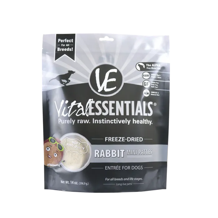 Vital Essentials Dog Fd Rabbit Mini Patties 14-oz