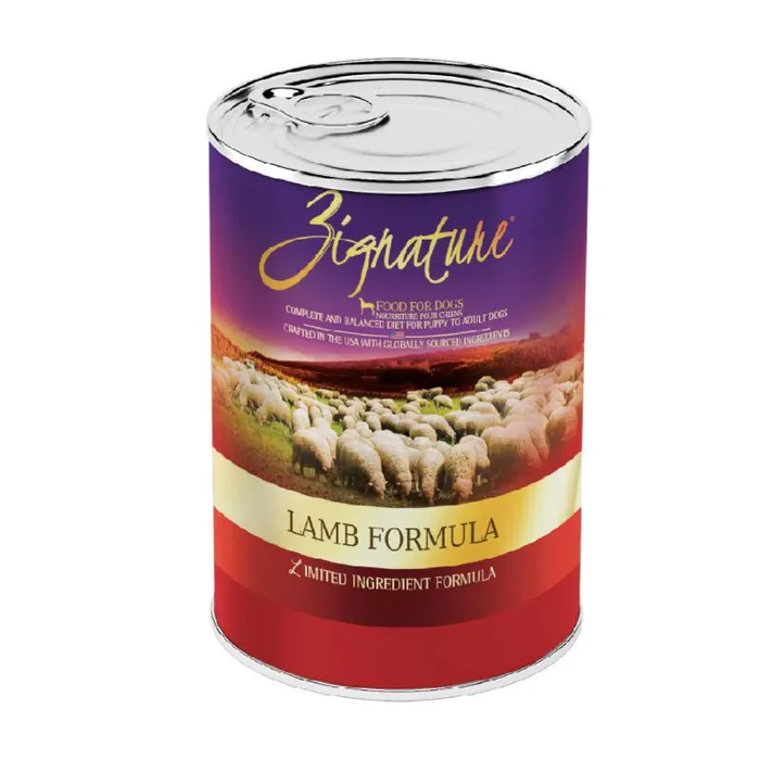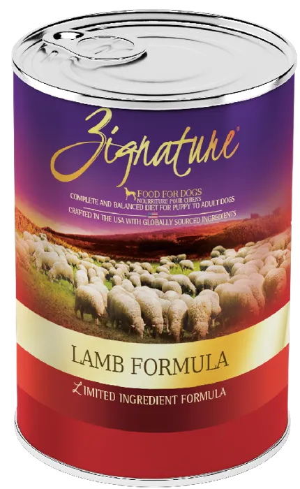 Fill your best friend's bowl with wholesome nutrition when you feed them Zignature Lamb Limited Ingredient Formula Grain-Free Canned Dog Food. Your pup will enjoy a delicious dinner made with real, farm-raised lamb from New Zealand, wholesome peas, chickpeas, and carrots. This meat-first recipe offers pups the protein they need to thrive, while Zignature's limited ingredient recipe throws out troublesome ingredients like chicken, corn, wheat, soy, and potatoes, creating peak hypoallergenic, low-glycemic nutrition. Combine that with key antioxidants, essential fatty acids, and a complete spectrum of vitamins and minerals for a well-rounded meal that goes beyond nature to become your pet's signature food for life.