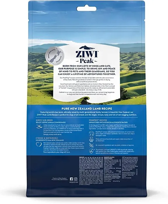 ZIWI Peak Lamb Recipe is formulated to meet the nutritional levels established by the AAFCO Dog Food Nutrient Profiles for All Life Stages including growth of large size dogs (70 lbs. or more as an adult).