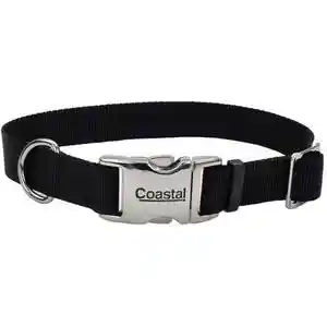 Adjustable Dog Collar With Metal Buckle - Black 1" X 14" - 20"