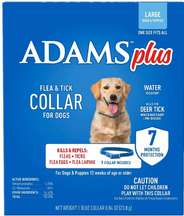 * Kills and repels fleas, ticks, flea eggs, flea larvae and kills tick larvae and tick nymphs.* Water-resistant design continues to work for seven months of formidable pest protection.* Active ingredient spreads from the collar through oils and hair to cover the entire body.* Offers a great, long-lasting alternative to monthly topical flea treatments.* Large size is designed for large dogs and puppies; excess can be cut off.