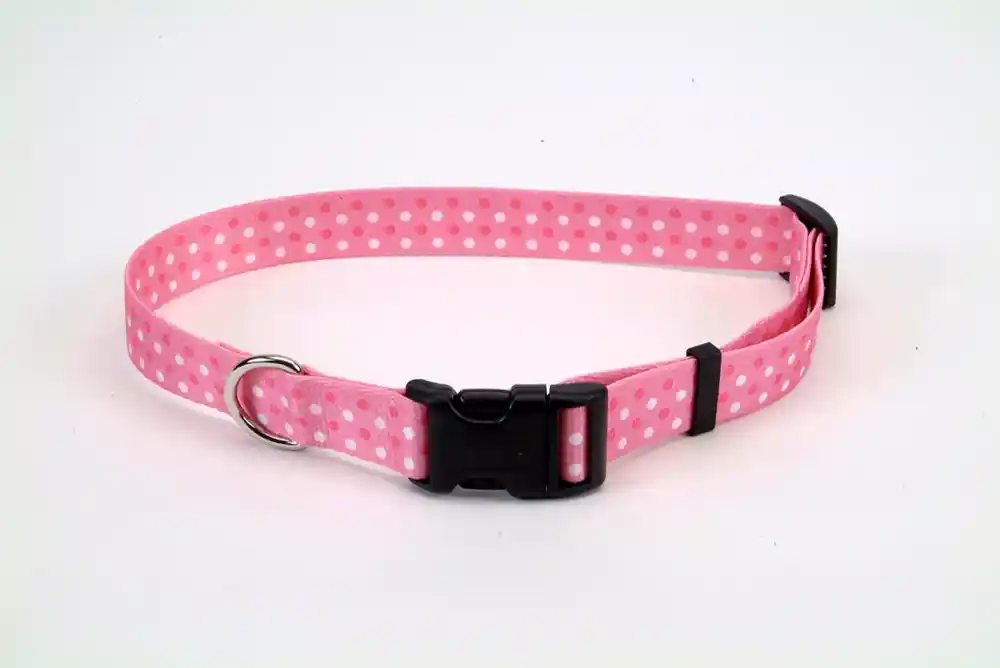 Adjustable Dog Collar Pink Dots 1" X 18" - 26"