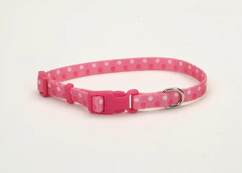Adjustable Dog Collar Pink Dots 3/8" X 08" - 12"