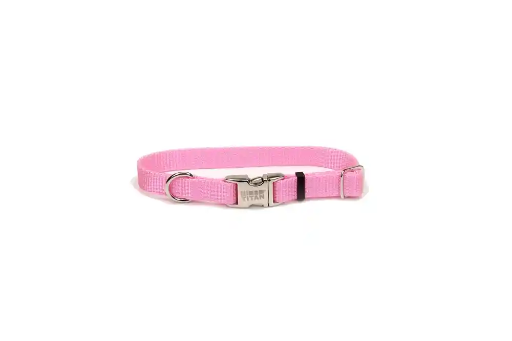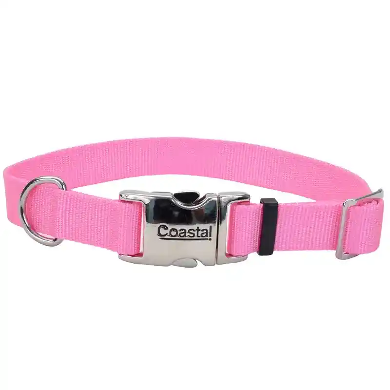 Adjustable Dog Collar With Metal Buckle - Pink Bright 5/8" X 10" 14"