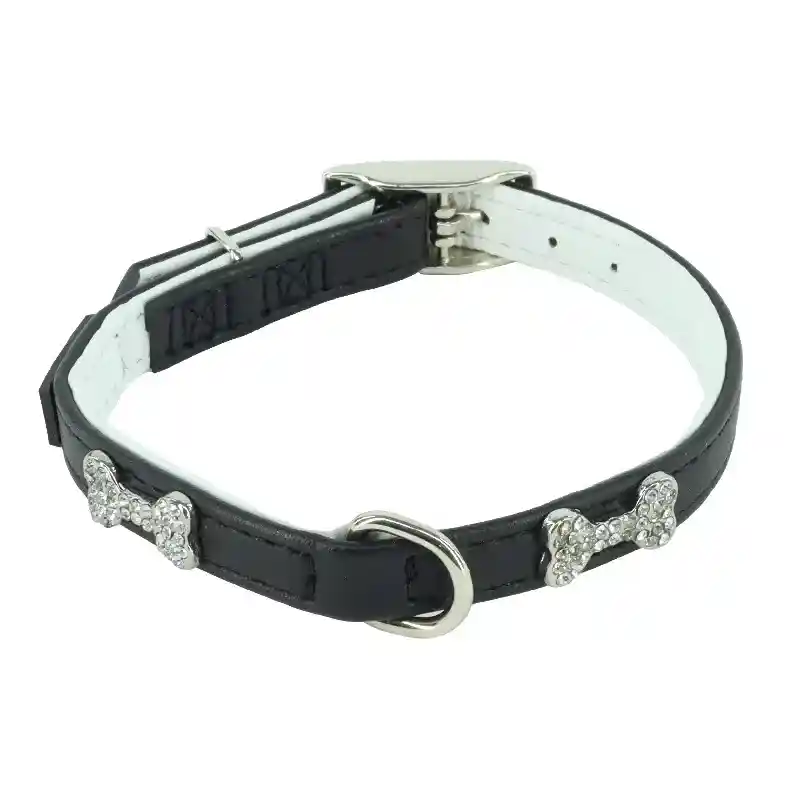 B'dazzled Bone Black Dog Collar - Sml