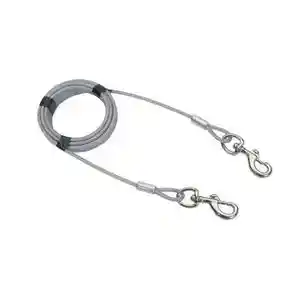 For use with dogs up to 150 lbs, the Titan Giant Cable Dog Tie Out is strong and dependable to ensure your dog's safety while enjoying the outdoors. This tie out is manufactured using durable hardware, an industry-leading swaging technique and stringent quality control so every Titan tie out offers superior strength you can count on.