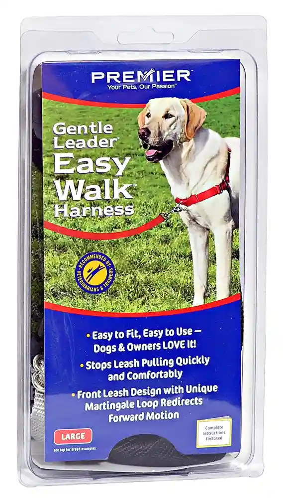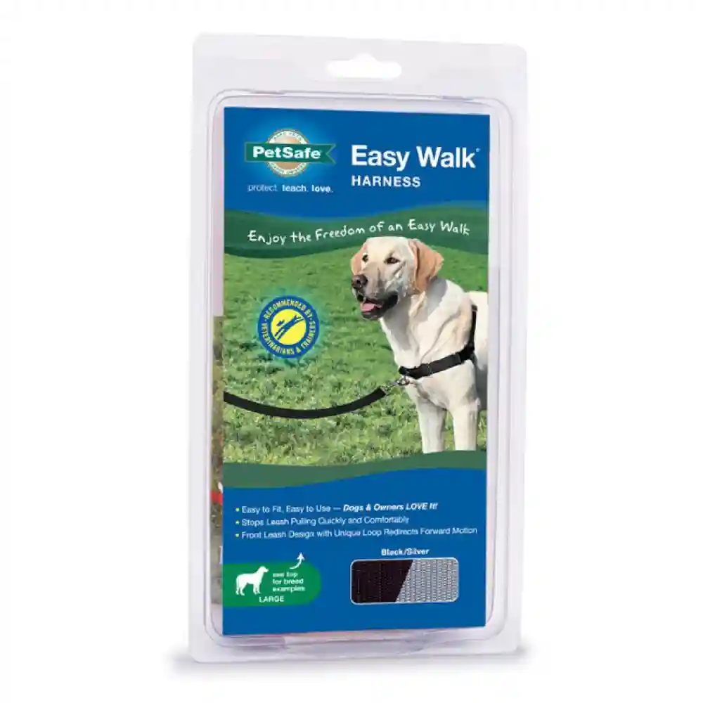 Easy to fit and comfortable to wear, the PetSafe® Deluxe Easy Walk® Harness gently discourages your dog from pulling on the leash. The front-chest leash attachment helps you steer your dog to the side and redirect his attention toward you. The Deluxe Easy Walk® Harness provides the same great benefits as the traditional version, but has additional features such as neoprene lined straps and highly visible, reflective strips.