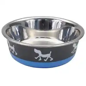 Design Series Non Skid Pup Design Dog Bowls Blue And Grey - 28oz