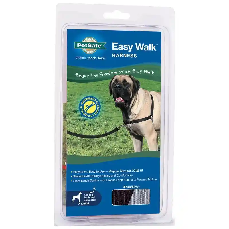 Some pups just don’t understand who’s in charge of walks, so they drag and pull their people behind them. The PetSafe® Easy Walk® Harness was created by a veterinary behaviorist over 15 years ago to stop light to moderate pulling. It puts pet-parents in control of the leash and is recommended by vets and trainers. The patented front clip d-ring with martingale loop reduces leash pulling by steering your dog and provides more control of your walks. The quick-snap shoulder and belly straps allow you to fit the harness in just a few minutes. Our perfect-fit guarantee ensures it will fit pooches of all proportions. And, if your furry friend decides to turn the harness into a chew toy, we have a 1-year chew damage replacement policy for a minimal fee.